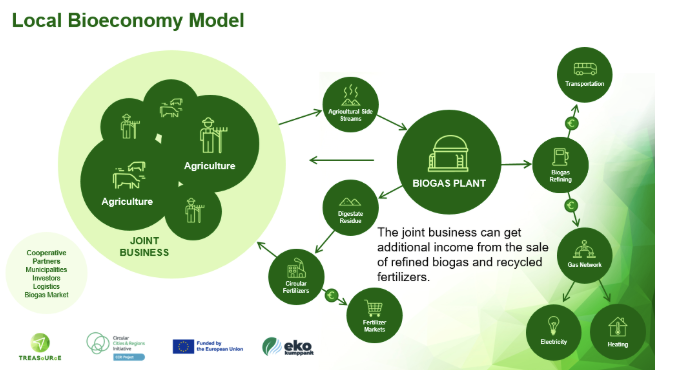 The TREASoURcE project has promoted local bioeconomy models based on biogas and recycled fertiliser production. The aim of the project has been to increase the production of renewable biogas and recycled fertilisers, while local models increase the self-sufficiency and security of supply of regions and support the development of the local economy.
